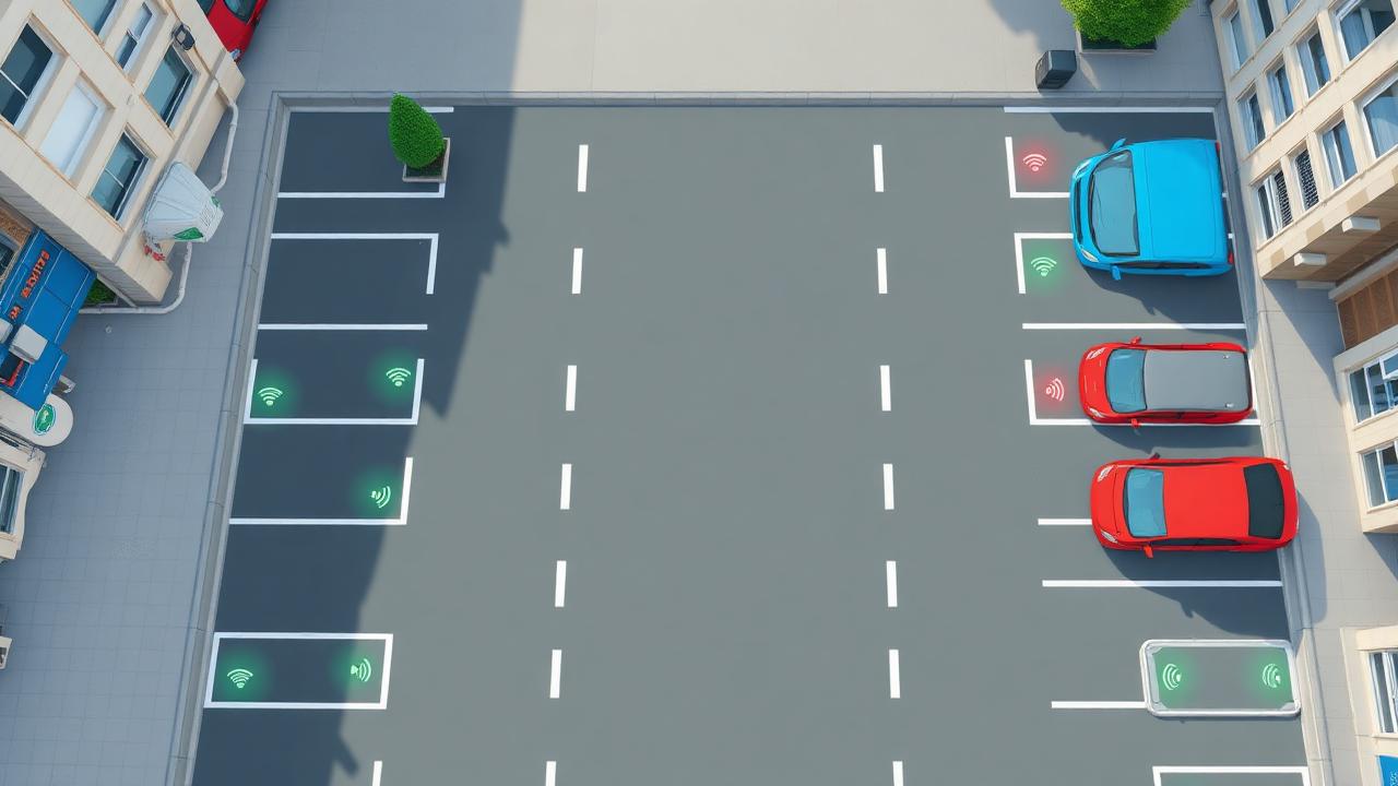 - Sensori IoT sotto l'asfalto o sui pali, che rilevano se uno stallo è libero/occupato.